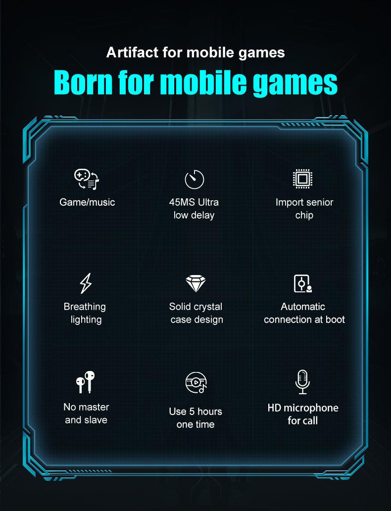 360 Stereo TWS gaming headphones designed for immersive mobile and PC gaming, delivering non‑inductive “zero delay” performance with 360‑degree stereo positioning so footsteps and shots are easy to locate in‑game. Cool breathing lights on both the futuristic charging case and earbuds enhance the gaming atmosphere while keeping the in‑ear fit light enough to feel almost weightless during long sessions.